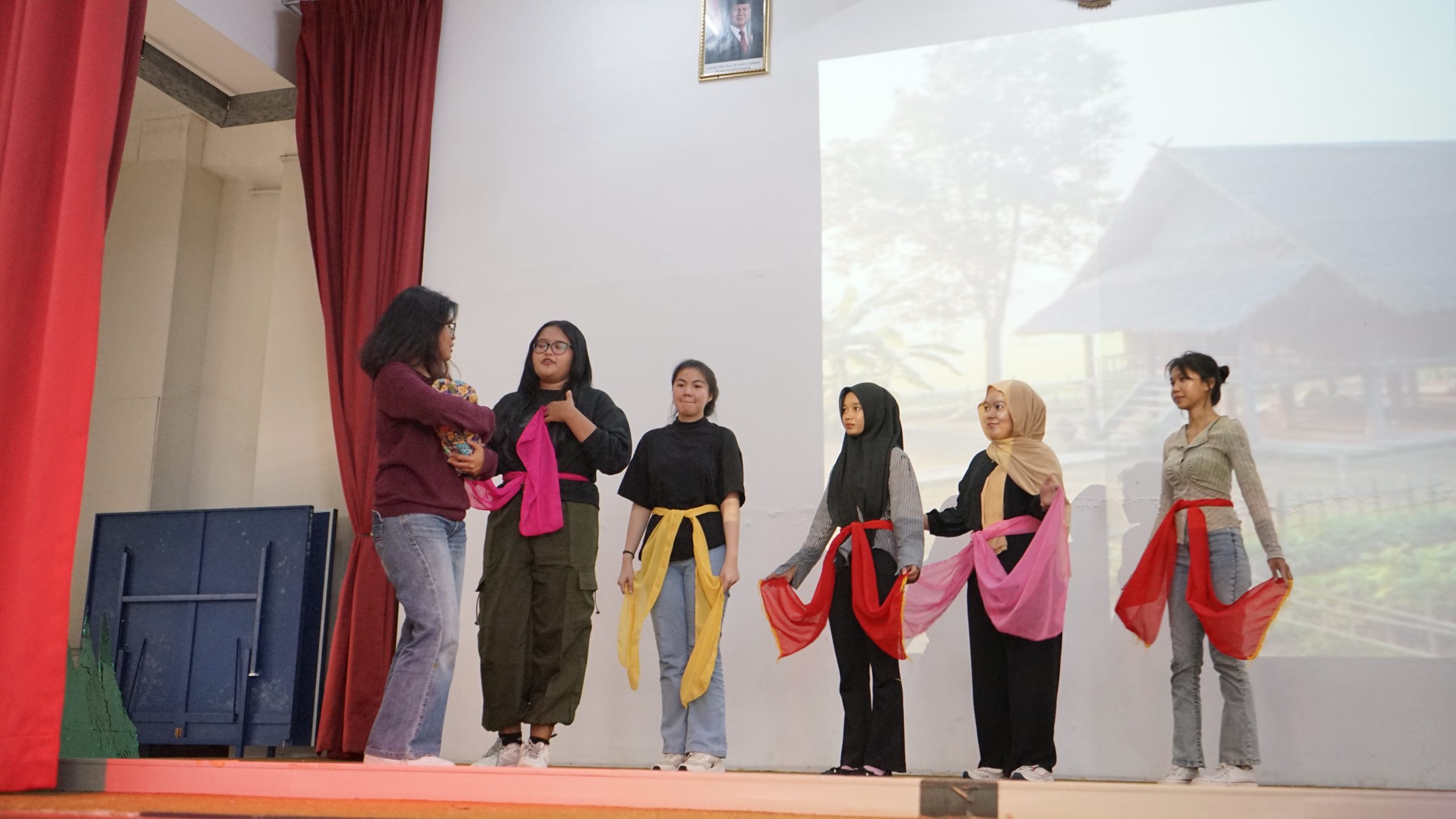 Kemeriahan berlanjut dengan penampilan dari Fakultas Ekonomi dan Bisnis yang membawakan lagu berbahasa Inggris dan drama musikal berjudul “The Lost Shawl”. Penampilan yang dikoordinatori oleh Chitra dan Ricko ini menunjukkan bahwa semangat berbahasa Inggris tidak hanya terbatas pada Fakultas Bahasa dan Budaya, tetapi telah menyebar ke seluruh fakultas di UNAKI. Para penonton terpukau dengan kualitas vokal dan akting yang ditampilkan, sementara Dekan Indah Arvianti tampak bangga melihat kolaborasi antar fakultas yang begitu solid.
