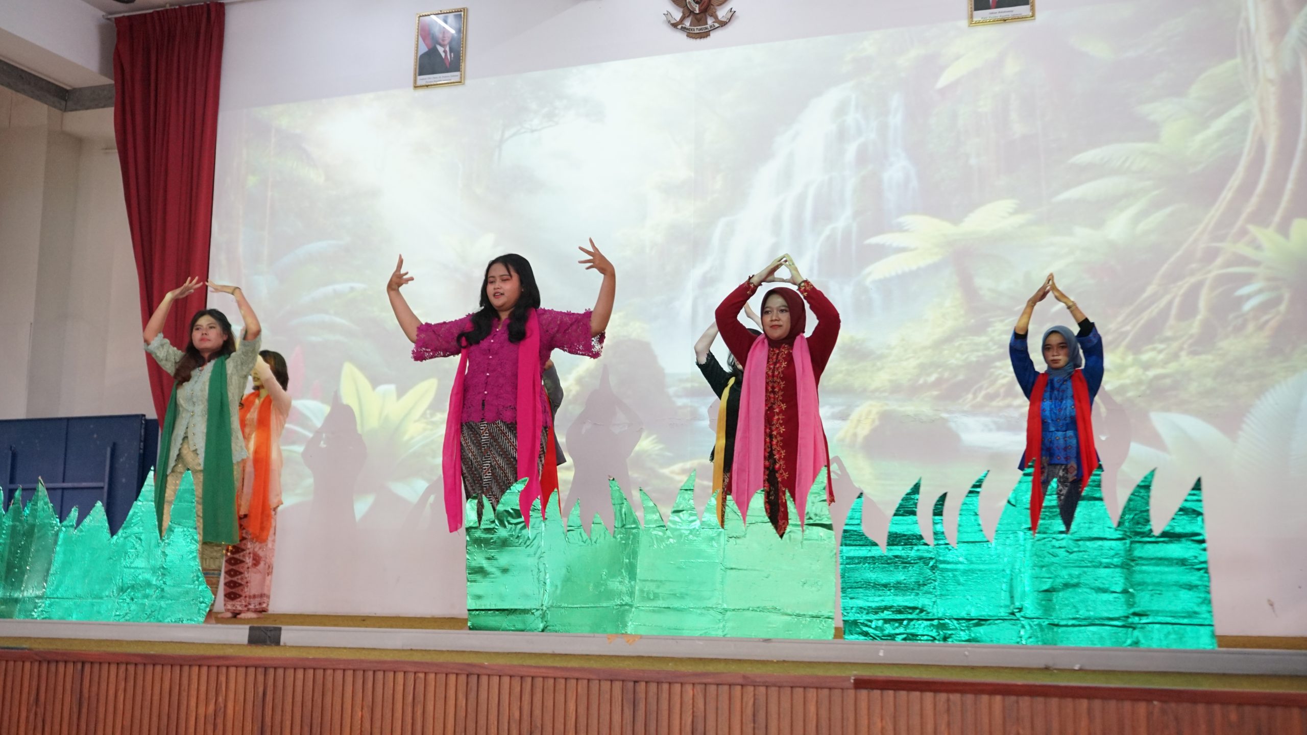 English Club UNAKI juga turut memeriahkan acara dengan penampilan tari yang elegan dan penuh makna. Koordinasi dari Bima dan Ricko menghasilkan koreografi yang memadukan gerakan tradisional dengan sentuhan modern, menciptakan pertunjukan yang unik dan berkesan. Penampilan ini menunjukkan bahwa bahasa Inggris dapat diekspresikan tidak hanya melalui kata-kata, tetapi juga melalui gerakan dan seni, sebuah konsep yang sangat diapresiasi oleh para dosen yang hadir.