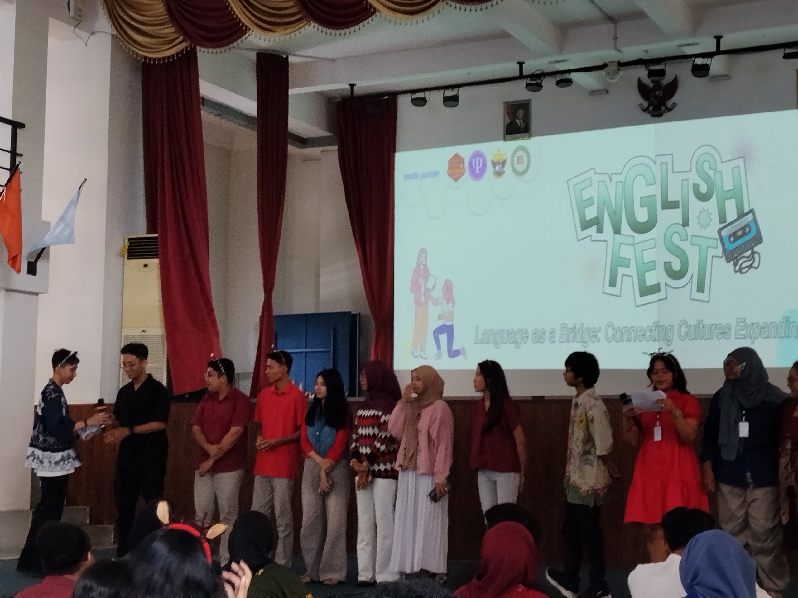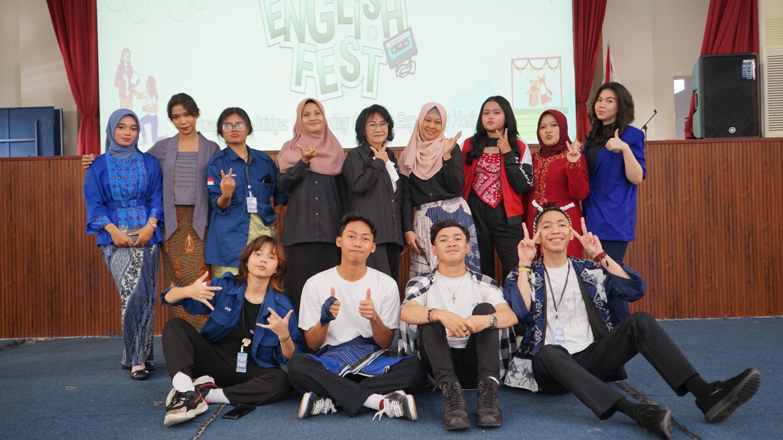 Acara ditutup dengan sesi foto bersama yang dikoordinatori oleh Chitra dan Ian. Seluruh peserta, panitia, dosen, dan undangan berkumpul untuk mengabadikan momen bersejarah English Fest 2025. Prof. Dr. Tri Purwani dan Dekan Indah Arvianti berdiri di tengah-tengah para mahasiswa dengan senyuman bangga, sementara senyuman dan kegembiraan terpancar dari setiap wajah yang hadir, menandakan kesuksesan acara yang telah diselenggarakan dengan penuh dedikasi.