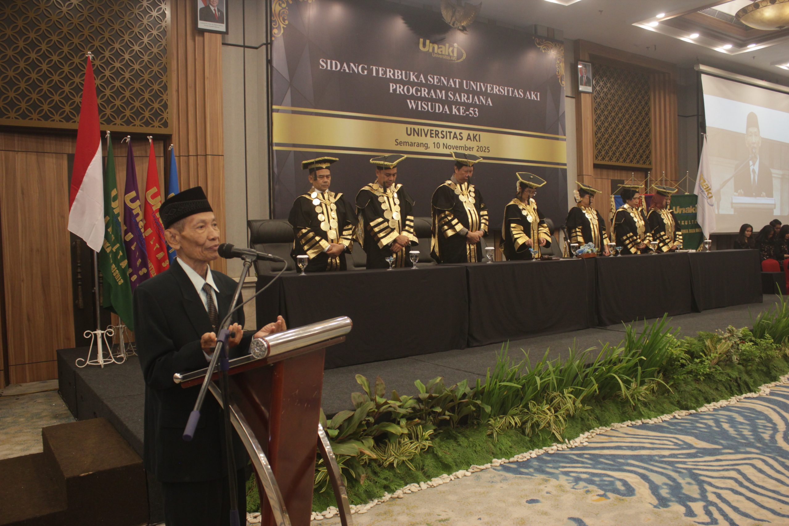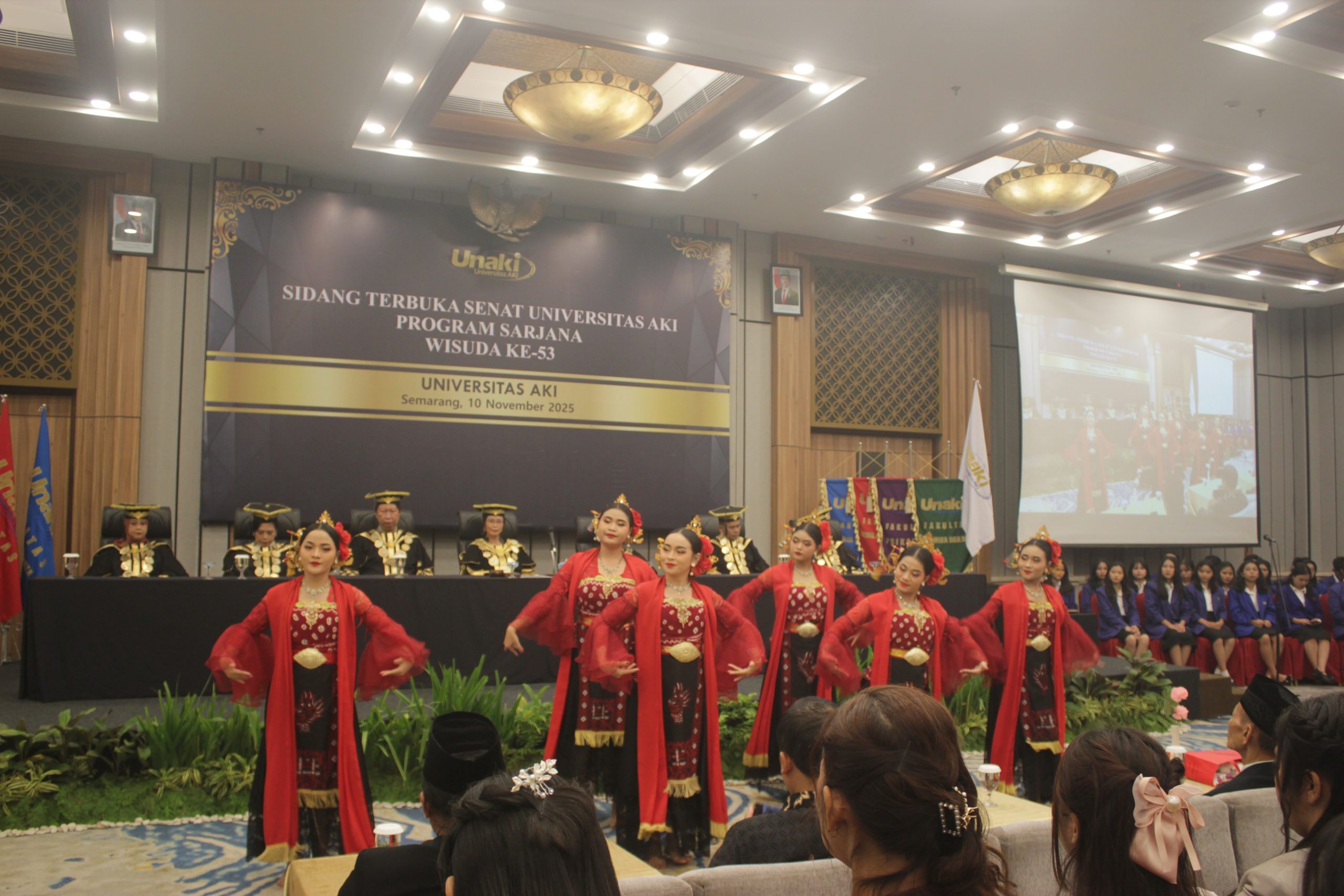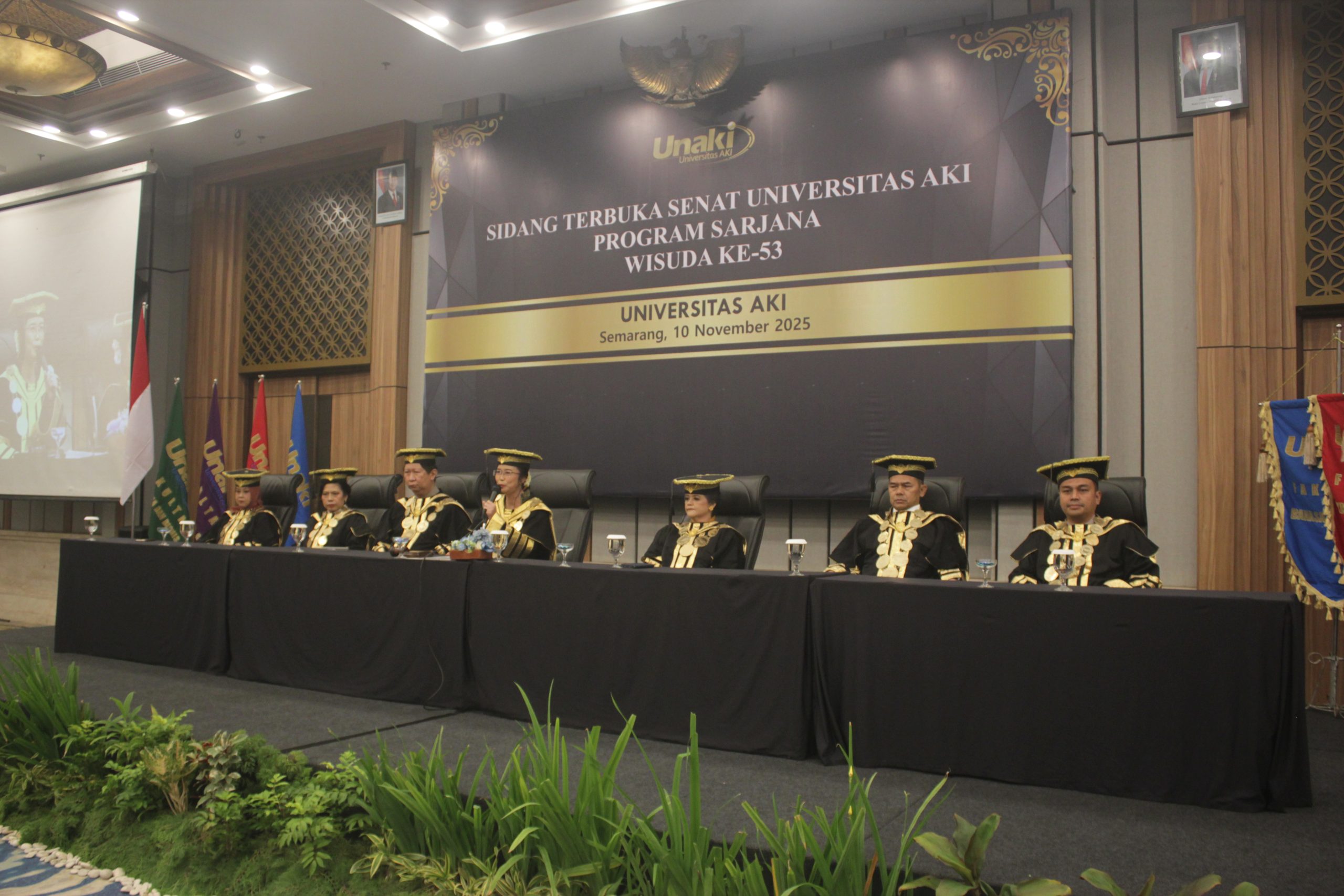 SEMARANG – Bertepatan dengan Hari Pahlawan 10 November 2025, Universitas AKI melaksanakan Sidang Terbuka Senat untuk Wisuda Sarjana ke-53 di Rama Shinta Ballroom Patra Semarang Hotel & Convention. Dalam kesempatan tersebut, Rektor Universitas AKI Prof. Dr. Tri Purwani, S.E., M.M. menyampaikan selamat kepada seluruh wisudawan dan wisudawati, sekaligus memberikan apresiasi tinggi kepada para orang tua atas kepercayaan dan kerjasama yang telah terjalin.
