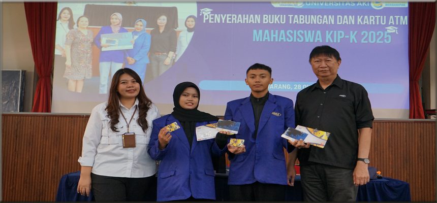 Semarang, 28 Oktober 2025, Universitas AKI bekerja sama dengan Bank BTN menyelenggarakan kegiatan Penyerahan Buku Tabungan dan Kartu ATM bagi mahasiswa penerima Beasiswa KIP Kuliah. Acara ini berlangsung dengan lancar dan penuh antusiasme di lingkungan kampus Universitas AKI, dengan dihadiri lebih dari 200 mahasiswa penerima manfaat program KIP Kuliah.